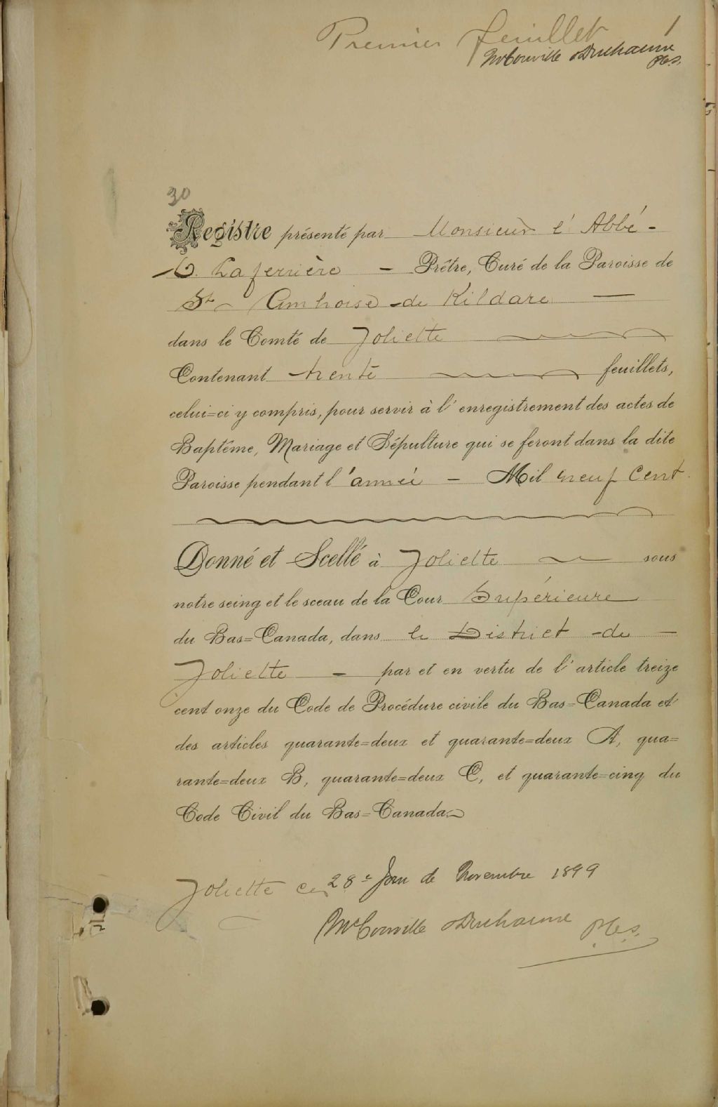Saint-Ambroise-de-Kildare, 1832-1921, Archives nationales à Montréal, Fonds Cour supérieure. District judiciaire de Joliette. État civil, (06M,CE605,S3).