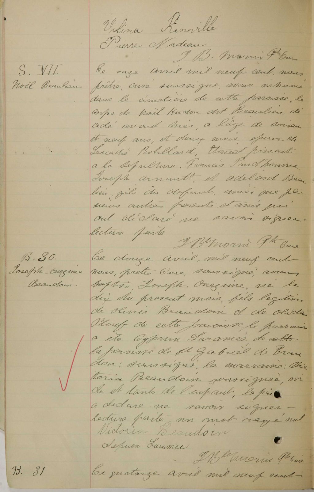 Saint-Jean-de-Matha, 1855-1921, Archives nationales à Montréal, Fonds Cour supérieure. District judiciaire de Joliette. État civil, (06M,CE605,S30).