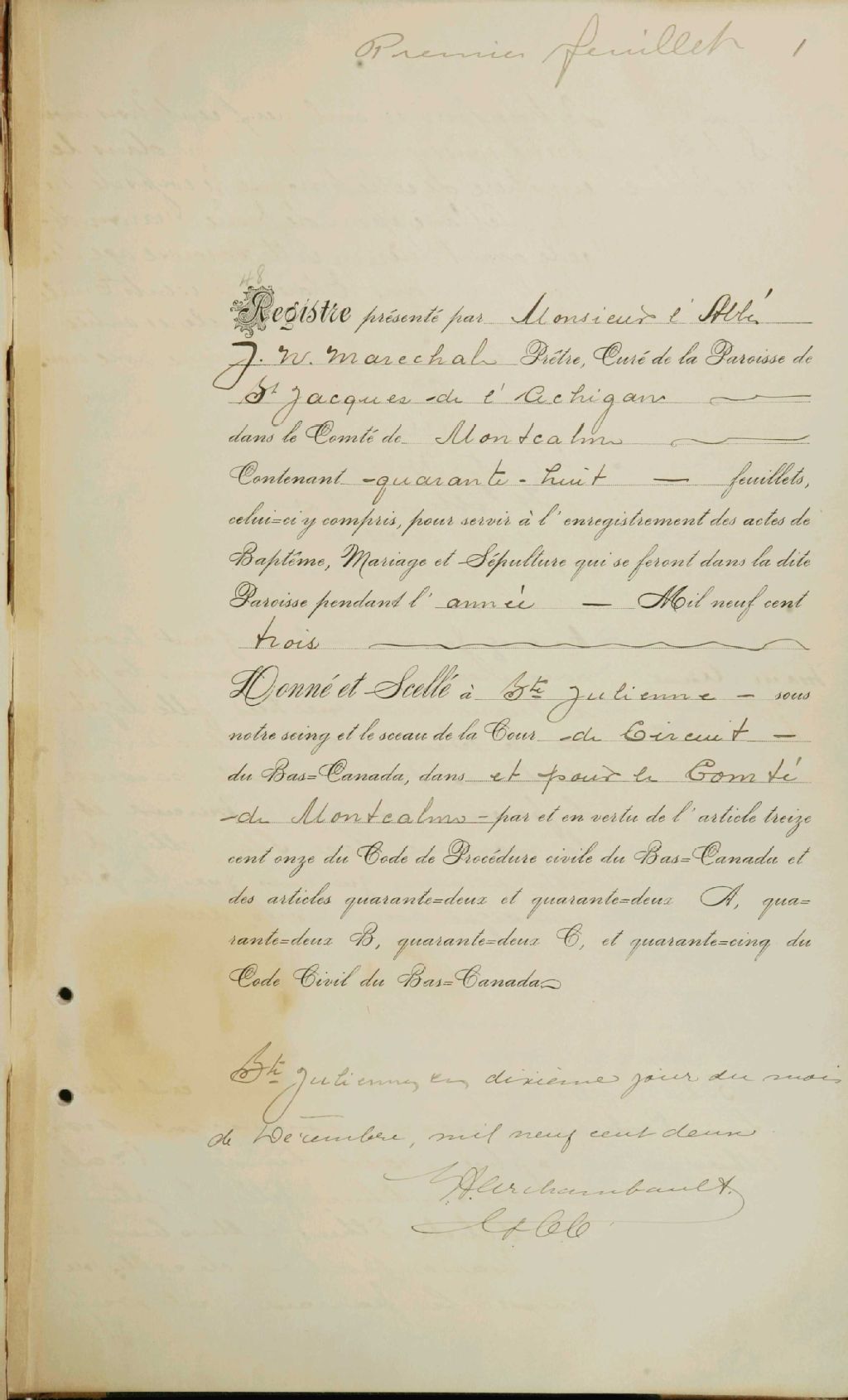 Saint-Jacques-de-l'Achigan, 1774-1921, Archives nationales à Montréal, Fonds Cour supérieure. District judiciaire de Joliette. État civil, (06M,CE605,S31).