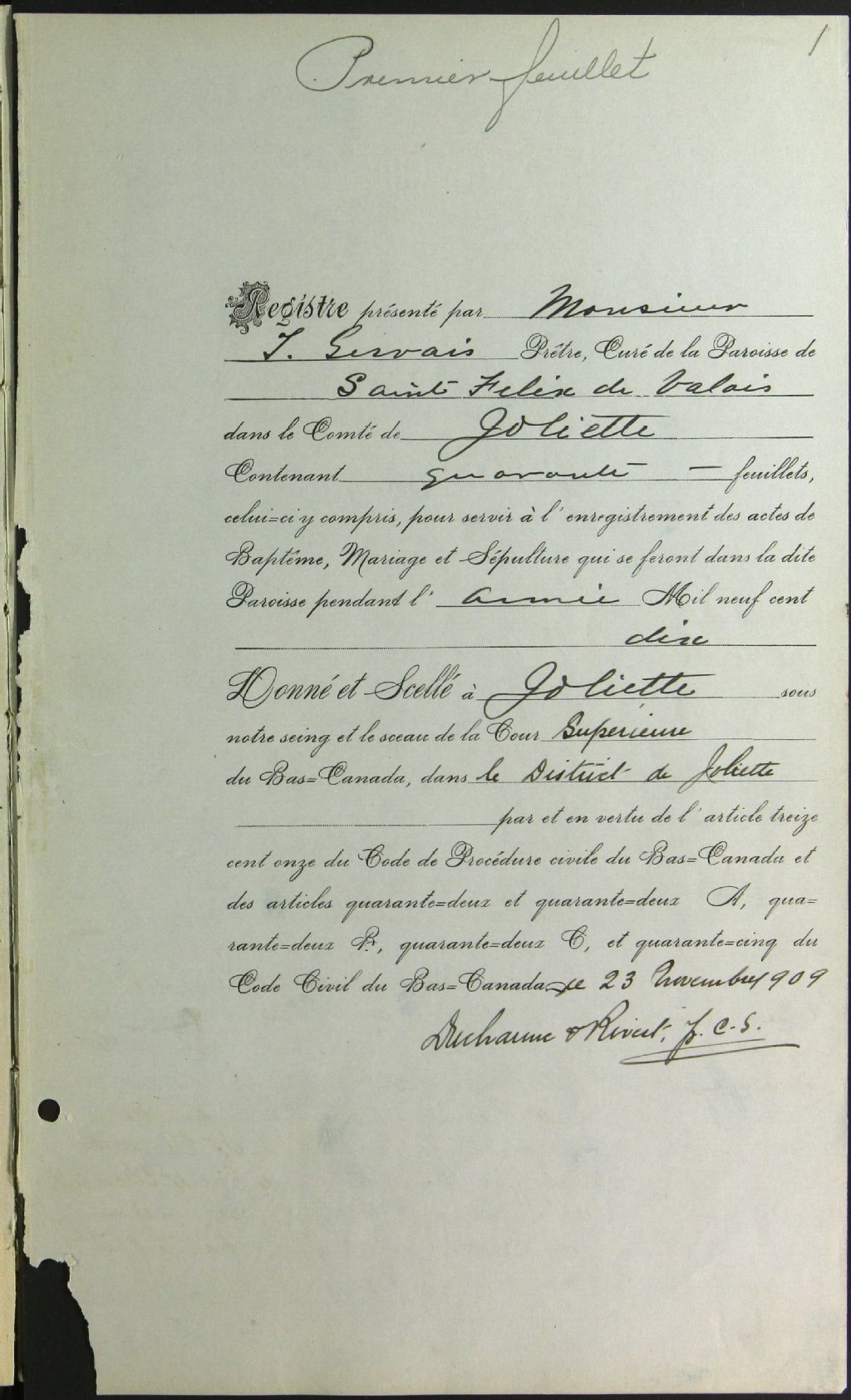 Saint-Félix-de-Valois, 1843-1921, Archives nationales à Montréal, Fonds Cour supérieure. District judiciaire de Joliette. État civil, (06M,CE605,S32).