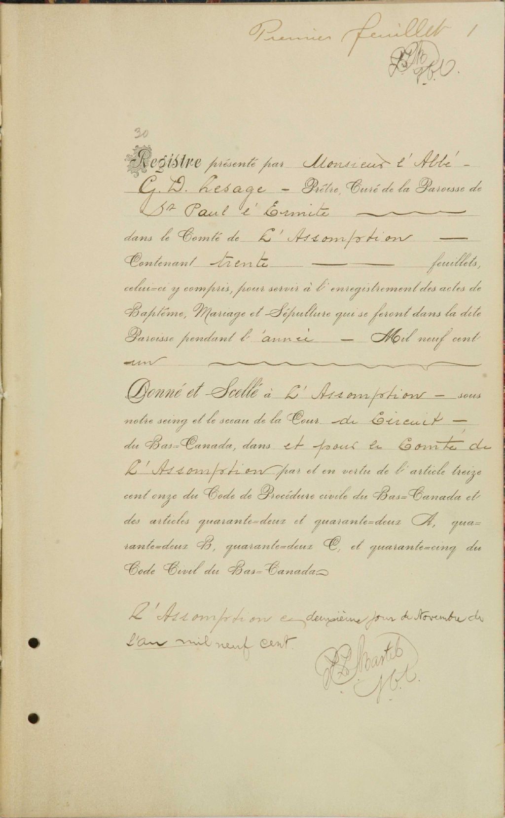 Saint-Paul-l'Ermite, 1857-1921, Archives nationales à Montréal, Fonds Cour supérieure. District judiciaire de Joliette. État civil, (06M,CE605,S33).