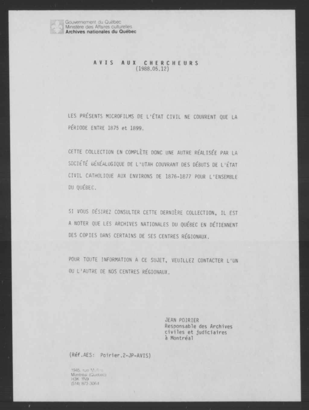 Saint-Michel-des Saints, 1863-1921, Archives nationales à Montréal, Fonds Cour supérieure. District judiciaire de Joliette. État civil, (06M,CE605,S38).