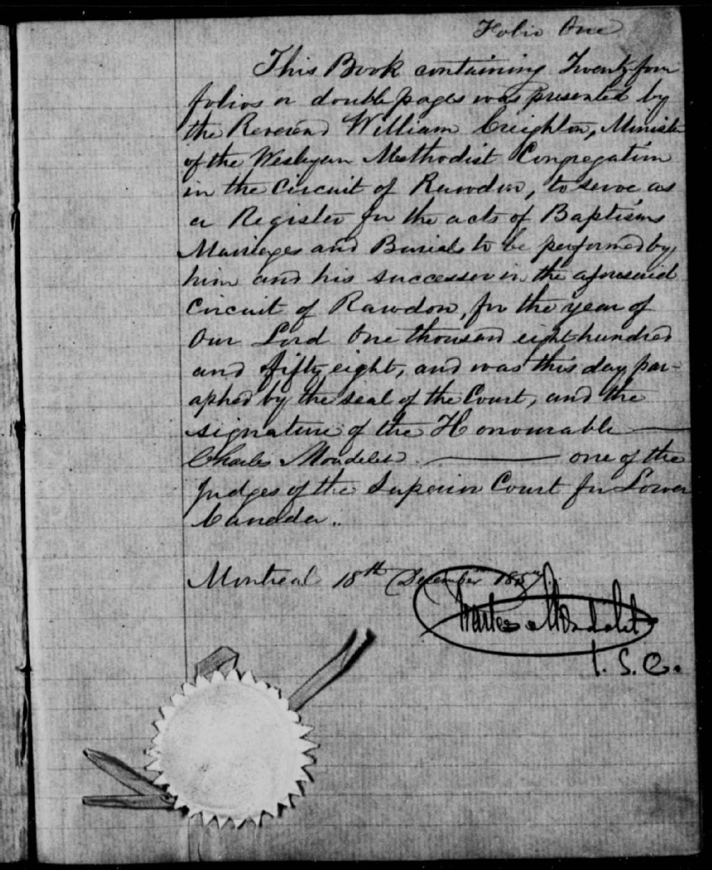 Rawdon Methodist Church, 1838-1917, Archives nationales à Montréal, Fonds Cour supérieure. District judiciaire de Joliette. État civil, (06M,CE605,S45).