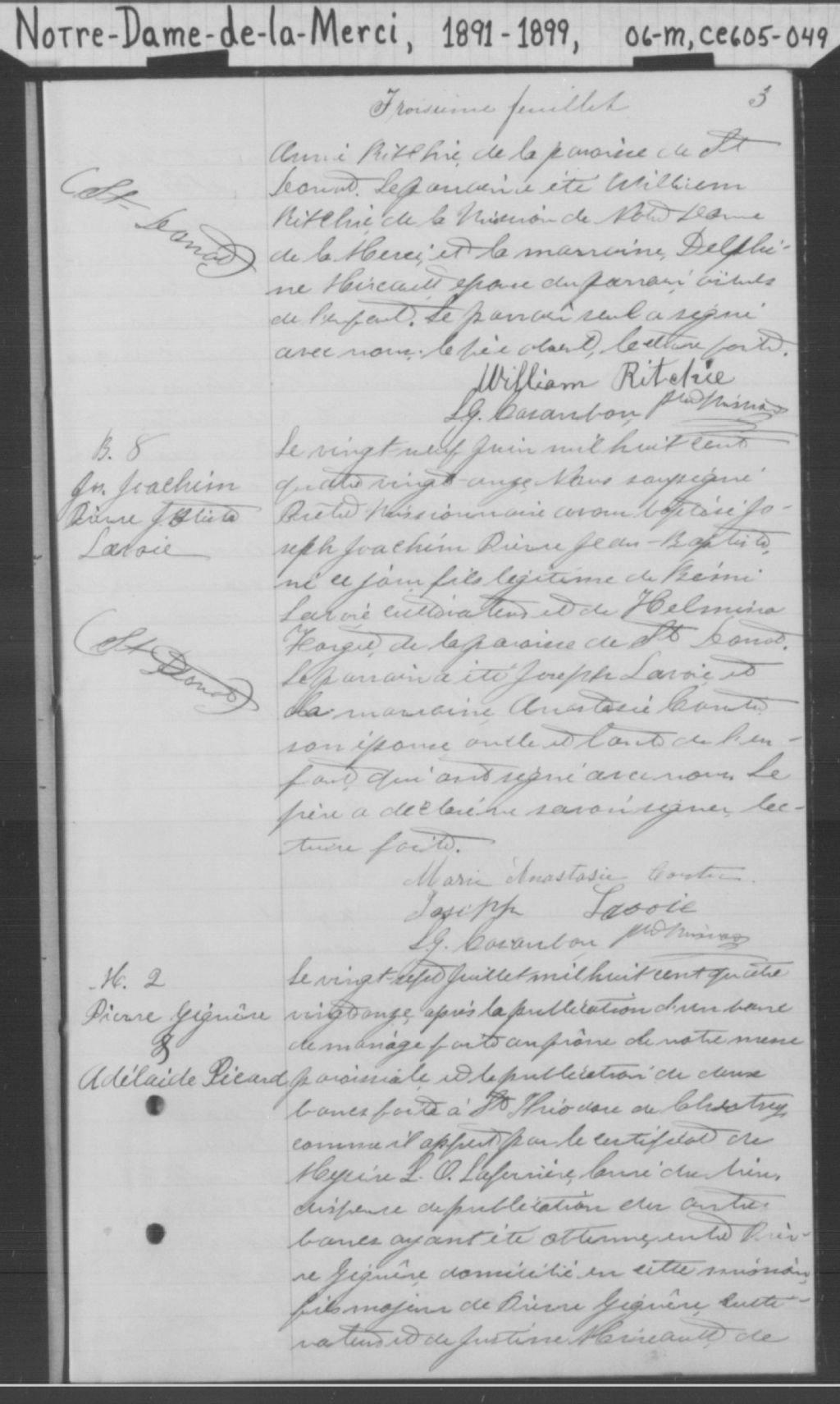 Notre-Dame-de-la-Merci, 1891-1921, Archives nationales à Montréal, Fonds Cour supérieure. District judiciaire de Joliette. État civil, (06M,CE605,S49).