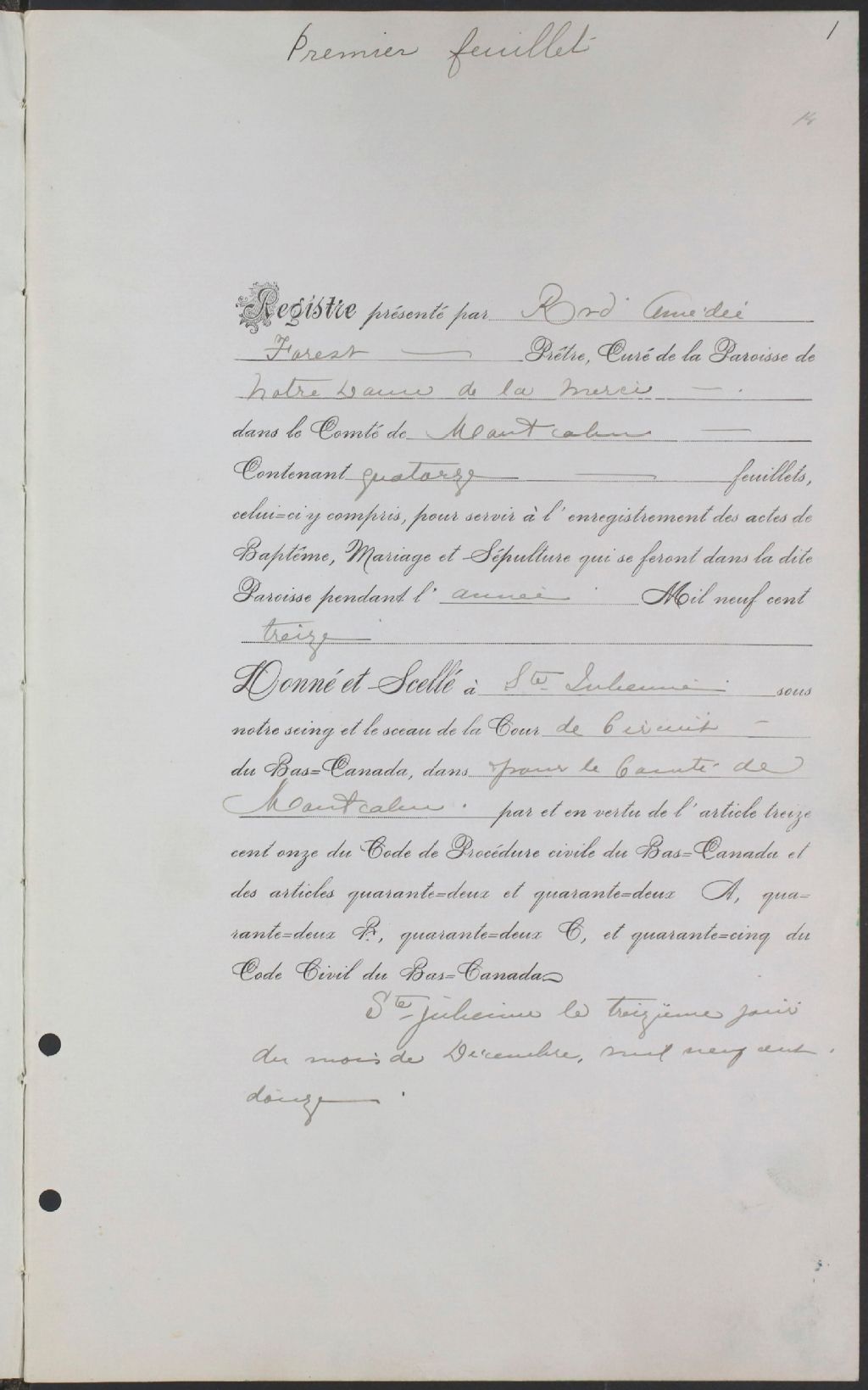 Notre-Dame-de-la-Merci, 1891-1921, Archives nationales à Montréal, Fonds Cour supérieure. District judiciaire de Joliette. État civil, (06M,CE605,S49).