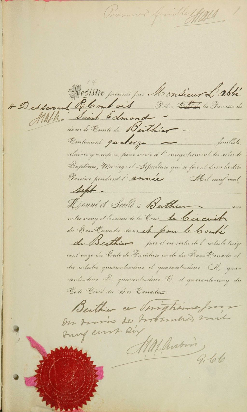 Saint-Edmond-de-Berthier, 1892-1921, Archives nationales à Montréal, Fonds Cour supérieure. District judiciaire de Joliette. État civil, (06M,CE605,S52).