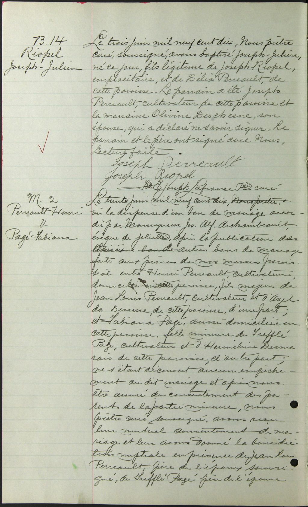 Saint-Émile, 1889-1921, Archives nationales à Montréal, Fonds Cour supérieure. District judiciaire de Joliette. État civil, (06M,CE605,S53).