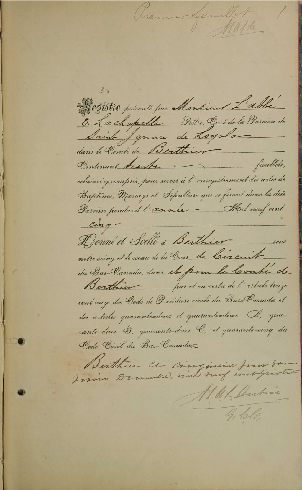 Saint-Ignace-de-Loyola, 1895-1921, Archives nationales à Montréal, Fonds Cour supérieure. District judiciaire de Joliette. État civil, (06M,CE605,S54).