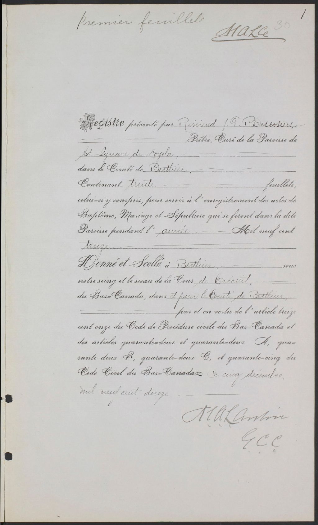 Saint-Ignace-de-Loyola, 1895-1921, Archives nationales à Montréal, Fonds Cour supérieure. District judiciaire de Joliette. État civil, (06M,CE605,S54).