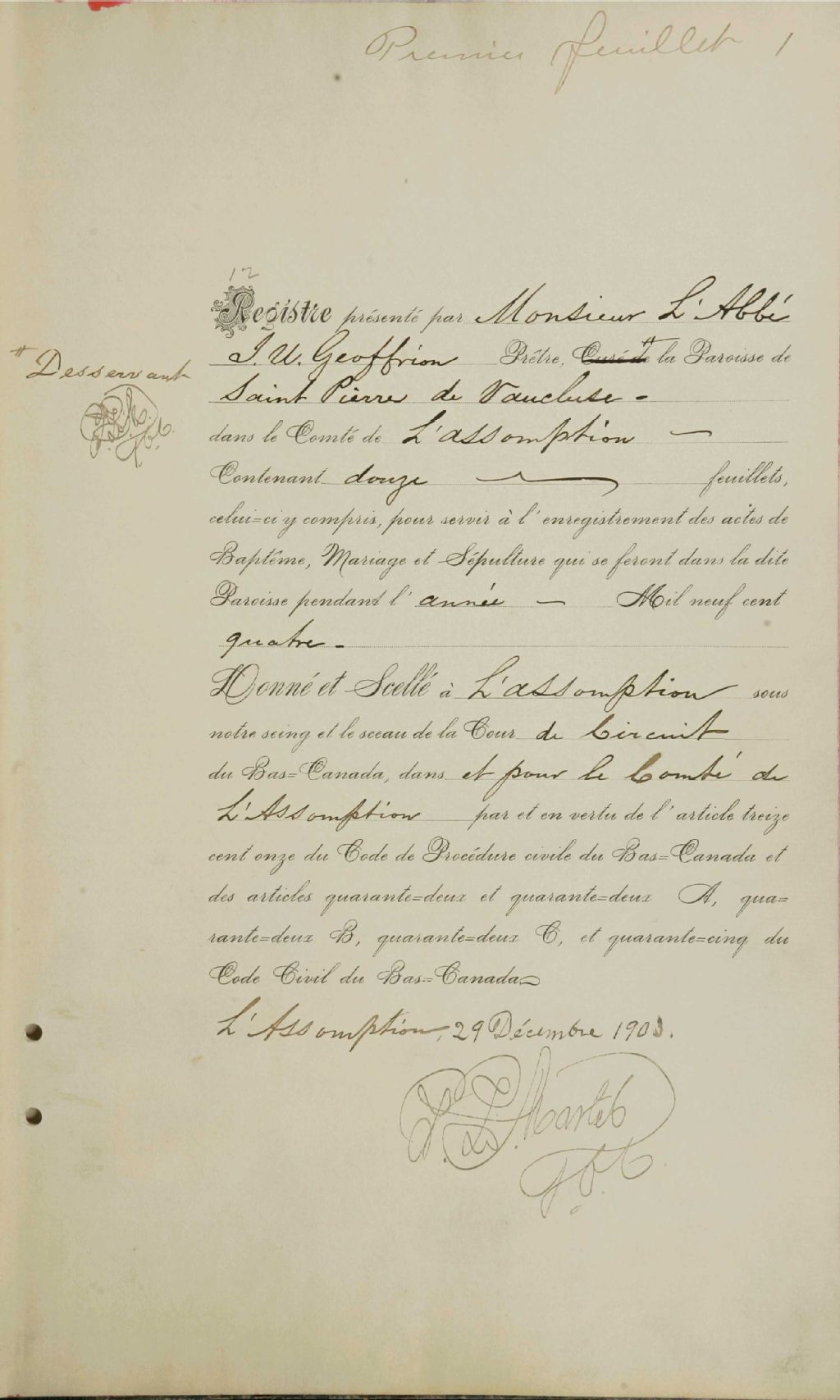 Saint-Gérard-Majella, 1904-1922, Archives nationales à Montréal, Fonds Cour supérieure. District judiciaire de Joliette. État civil, (06M,CE605,S59).