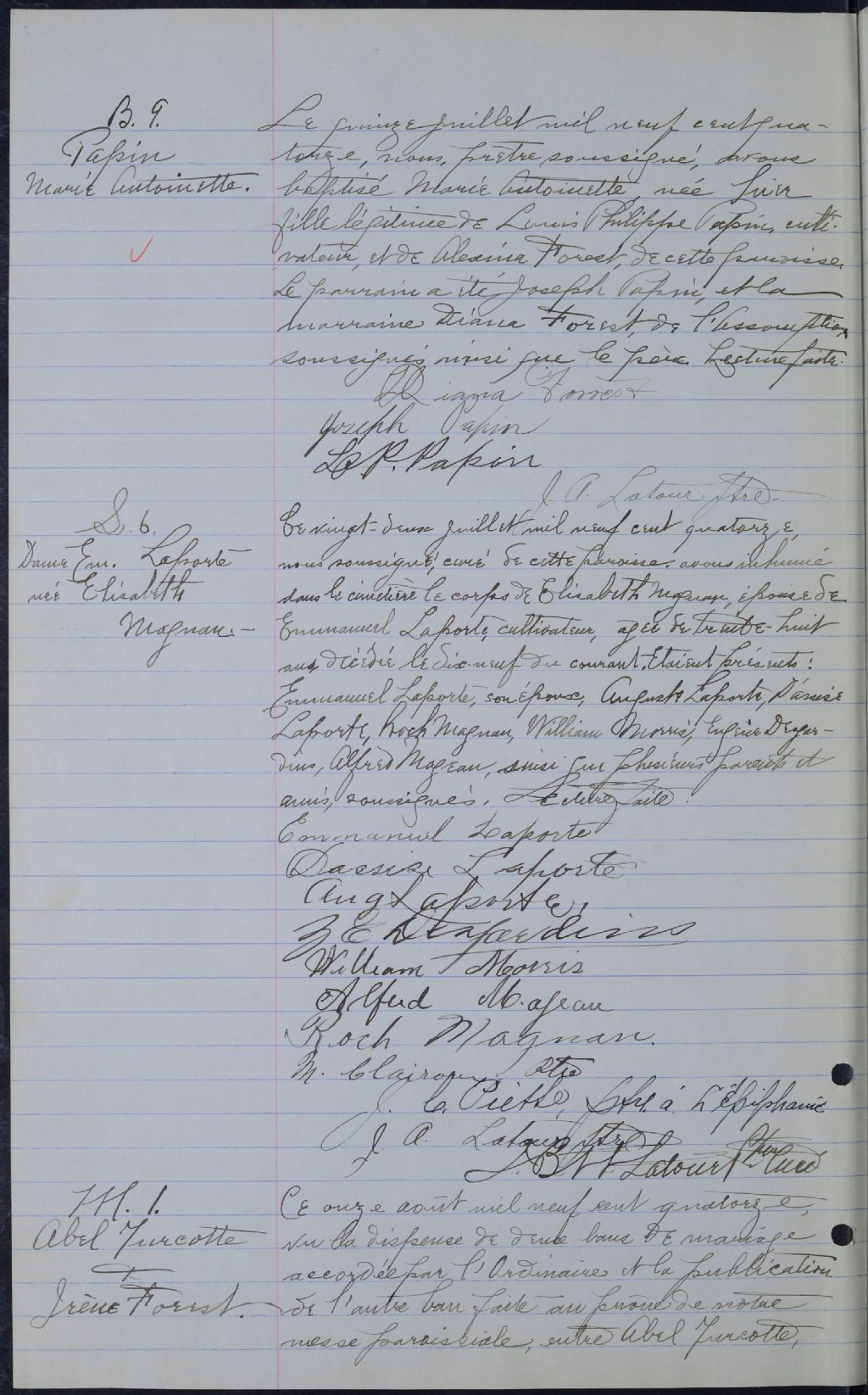 Saint-Gérard-Majella, 1904-1921, Archives nationales à Montréal, Fonds Cour supérieure. District judiciaire de Joliette. État civil, (06M,CE605,S59).