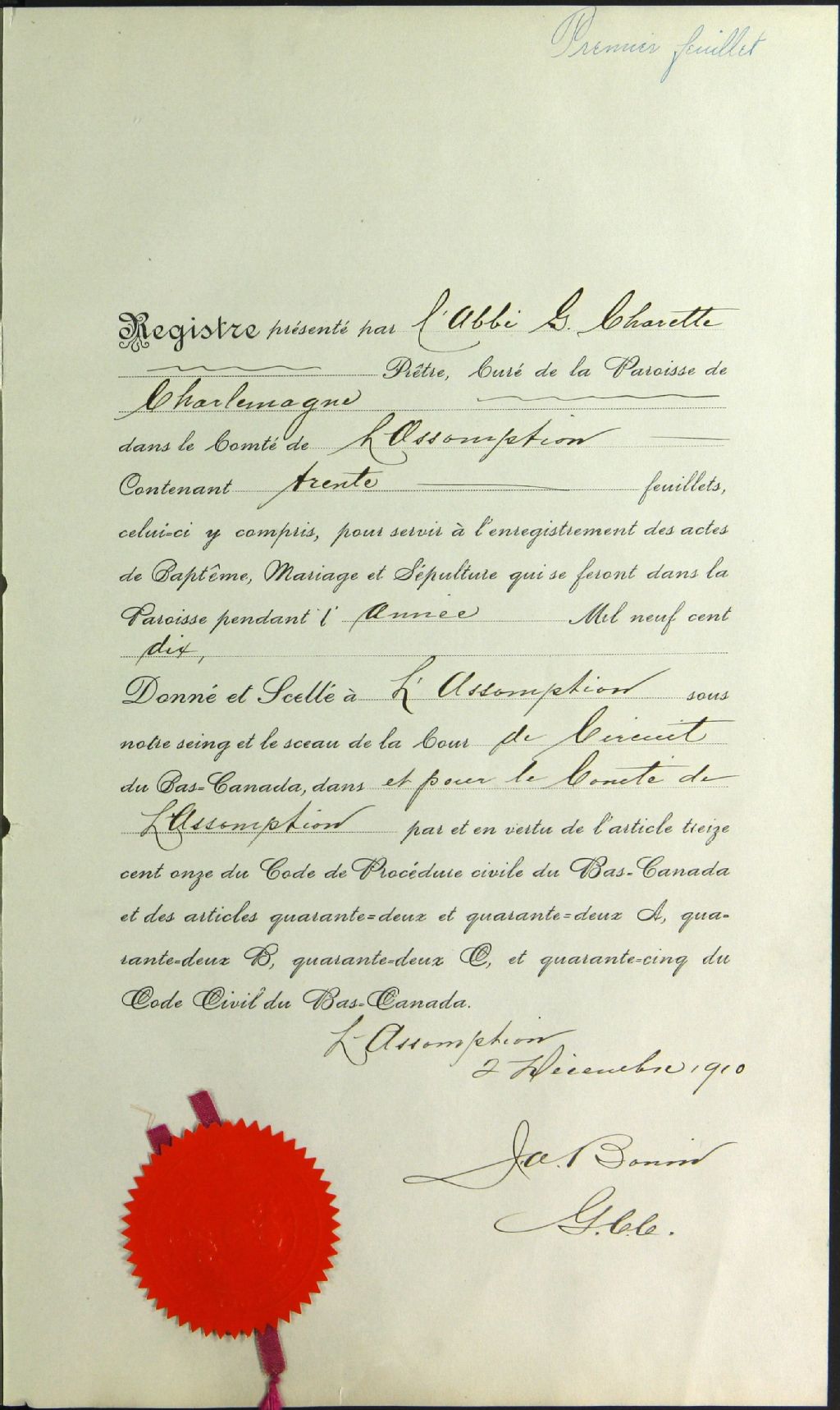 Saint-Simon et Saint-Jude, 1910-1921, Archives nationales à Montréal, Fonds Cour supérieure. District judiciaire de Joliette. État civil, (06M,CE605,S63).