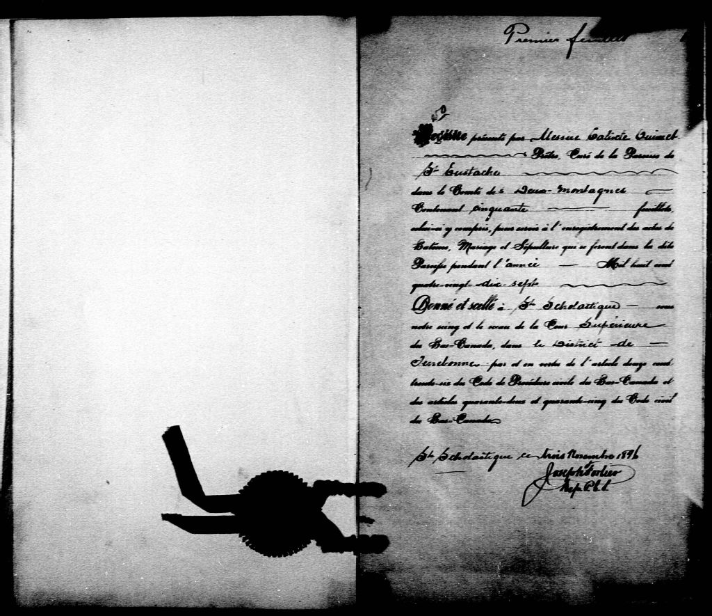 Saint-Eustache, 1769-1922, Archives nationales à Montréal, Fonds Cour supérieure. District judiciaire de Terrebonne. État civil, (06M,CE606,S11).