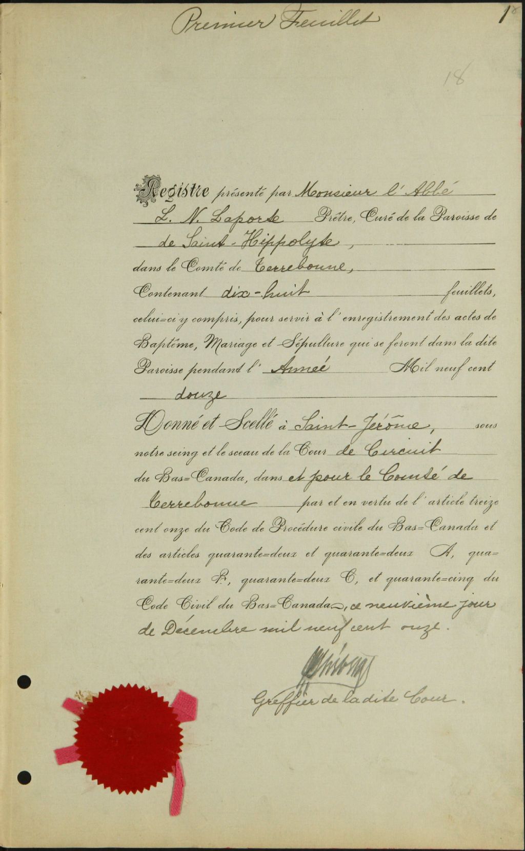 Saint-Hippolyte, 1867-1921, Archives nationales à Montréal, Fonds Cour supérieure. District judiciaire de Terrebonne. État civil, (06M,CE606,S15).