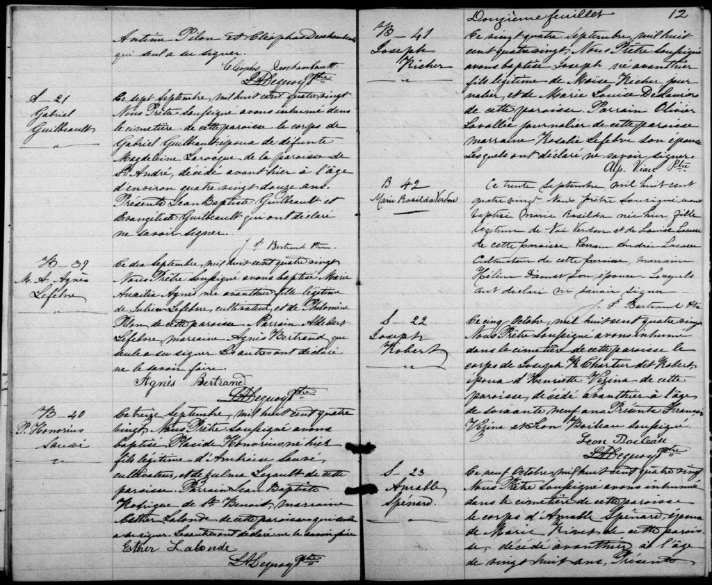 Saint-Placide, 1850-1921, Archives nationales à Montréal, Fonds Cour supérieure. District judiciaire de Terrebonne. État civil, (06M,CE606,S16).