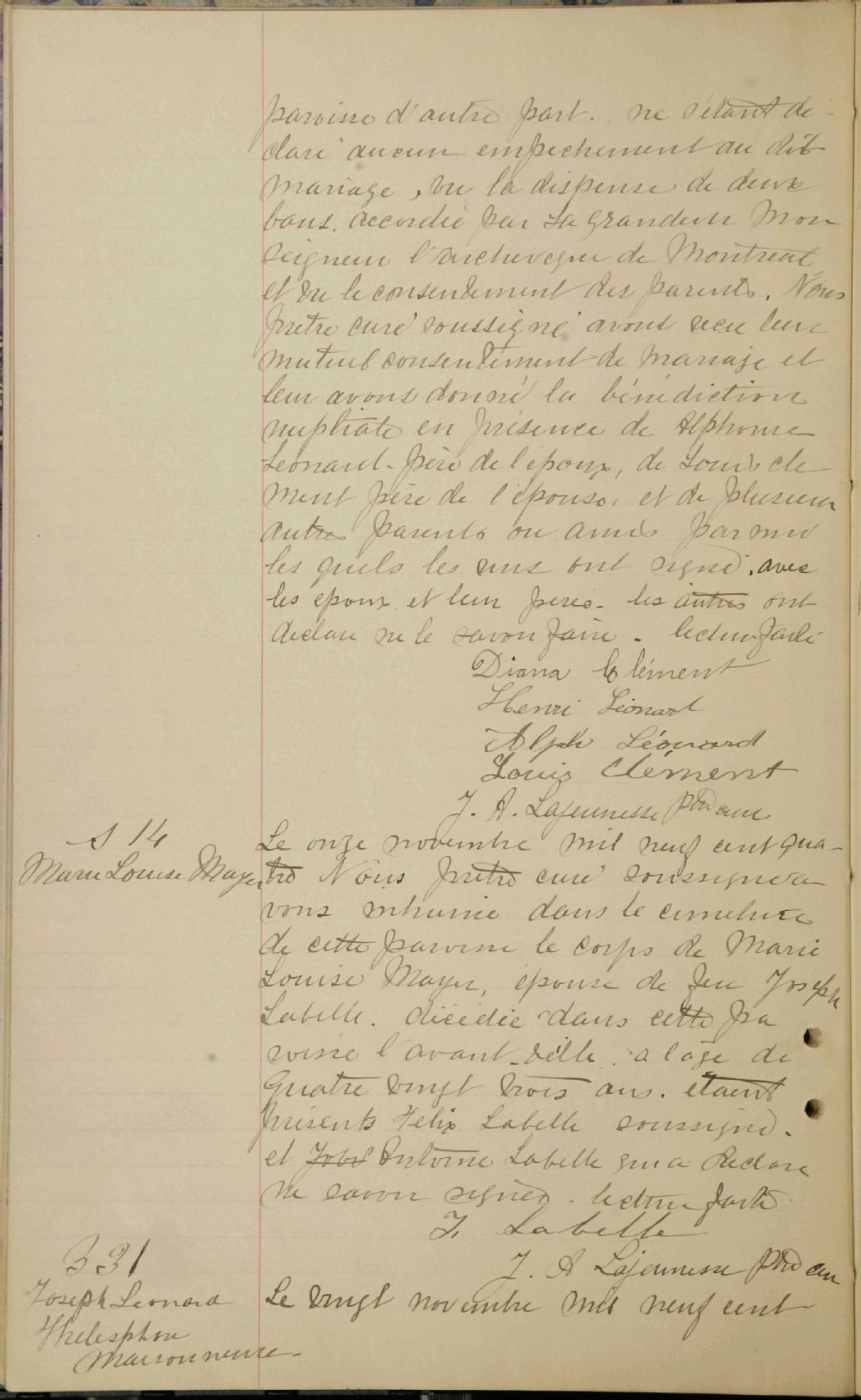 Sainte-Monique, 1872-1921, Archives nationales à Montréal, Fonds Cour supérieure. District judiciaire de Terrebonne. État civil, (06M,CE606,S18).