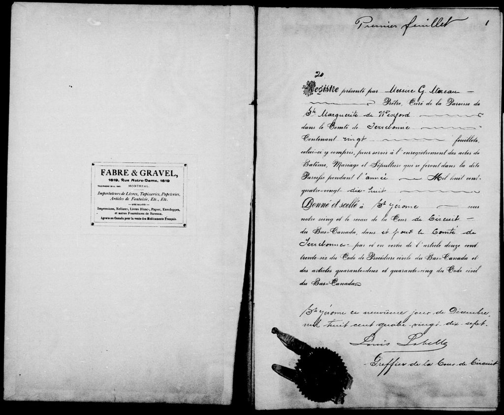 Sainte-Marguerite-du-Lac-Masson, 1866-1920, Archives nationales à Montréal, Fonds Cour supérieure. District judiciaire de Terrebonne. État civil, (06M,CE606,S19).