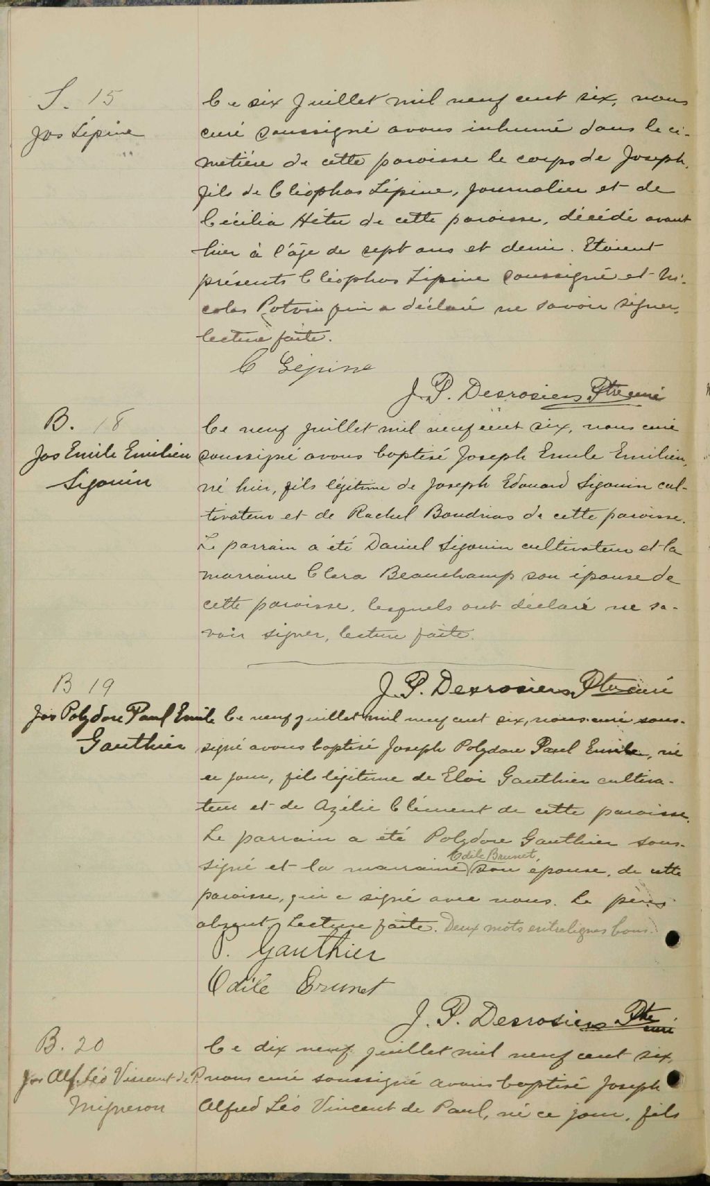 Sainte-Marguerite-du-Lac-Masson, 1866-1920, Archives nationales à Montréal, Fonds Cour supérieure. District judiciaire de Terrebonne. État civil, (06M,CE606,S19).