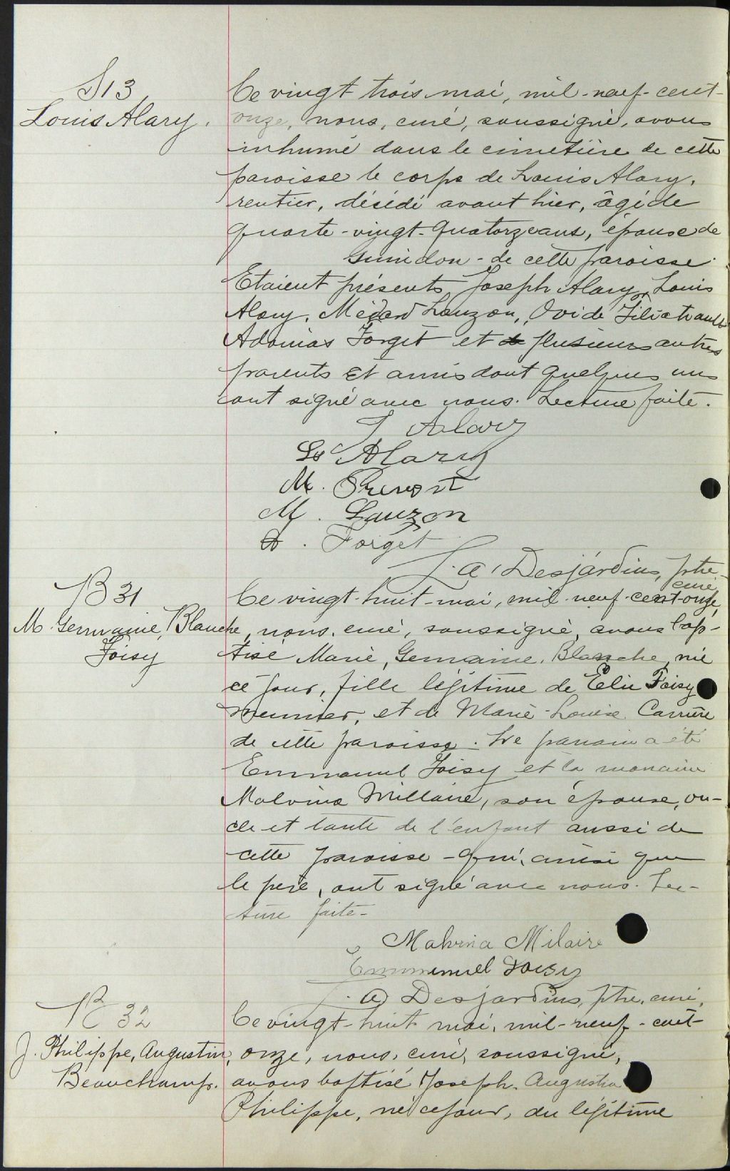 Saint-Sauveur, 1853-1921, Archives nationales à Montréal, Fonds Cour supérieure. District judiciaire de Terrebonne. État civil, (06M,CE606,S23).