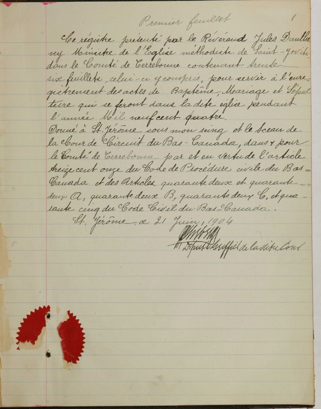 St. Jovite Methodist Church, 1897-1917, Archives nationales à Montréal, Fonds Cour supérieure. District judiciaire de Terrebonne. État civil, (06M,CE606,S68).