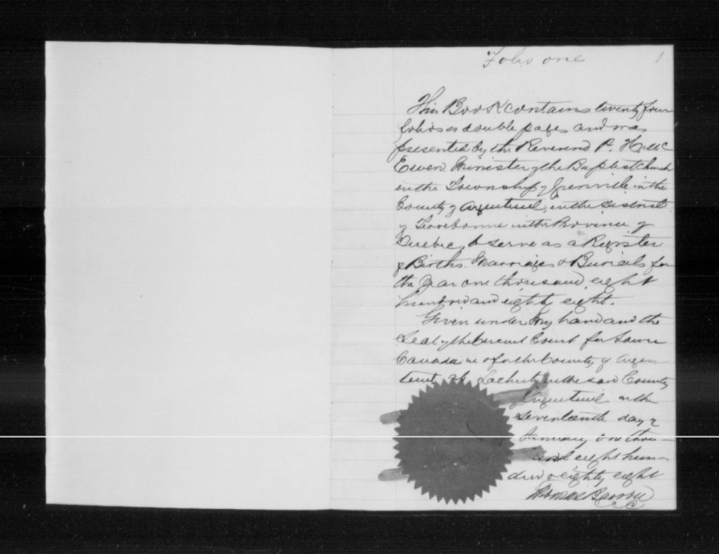 Grenville Baptist Church, 1888-1916, 1918-1921, Archives nationales à Montréal, Fonds Cour supérieure. District judiciaire de Terrebonne. État civil, (06M,CE606,S69).