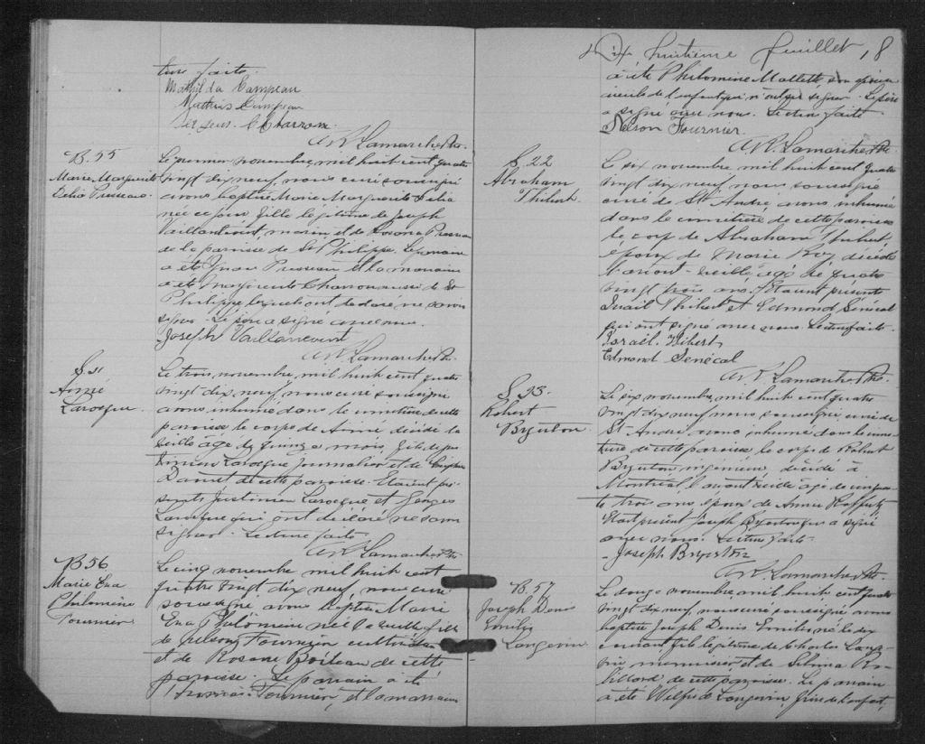 Saint-André-d'Argenteuil, 1833-1921, Archives nationales à Montréal, Fonds Cour supérieure. District judiciaire de Terrebonne. État civil, (06M,CE606,S7).
