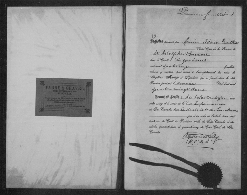 Saint-Adolphe-d'Howard, 1882-1921, Archives nationales à Montréal, Fonds Cour supérieure. District judiciaire de Terrebonne. État civil, (06M,CE606,S76).