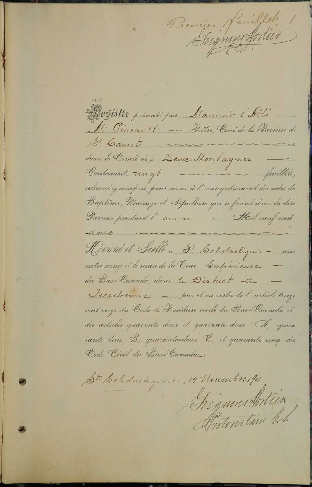 Saint-Canut, 1886-1921, Archives nationales à Montréal, Fonds Cour supérieure. District judiciaire de Terrebonne. État civil, (06M,CE606,S77).