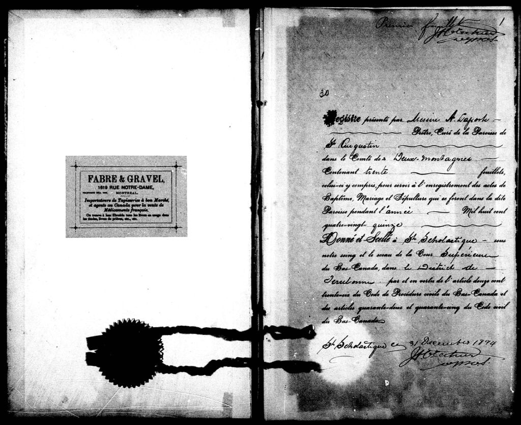 Saint-Augustin, 1838-1921, Archives nationales à Montréal, Fonds Cour supérieure. District judiciaire de Terrebonne. État civil, (06M,CE606,S8).