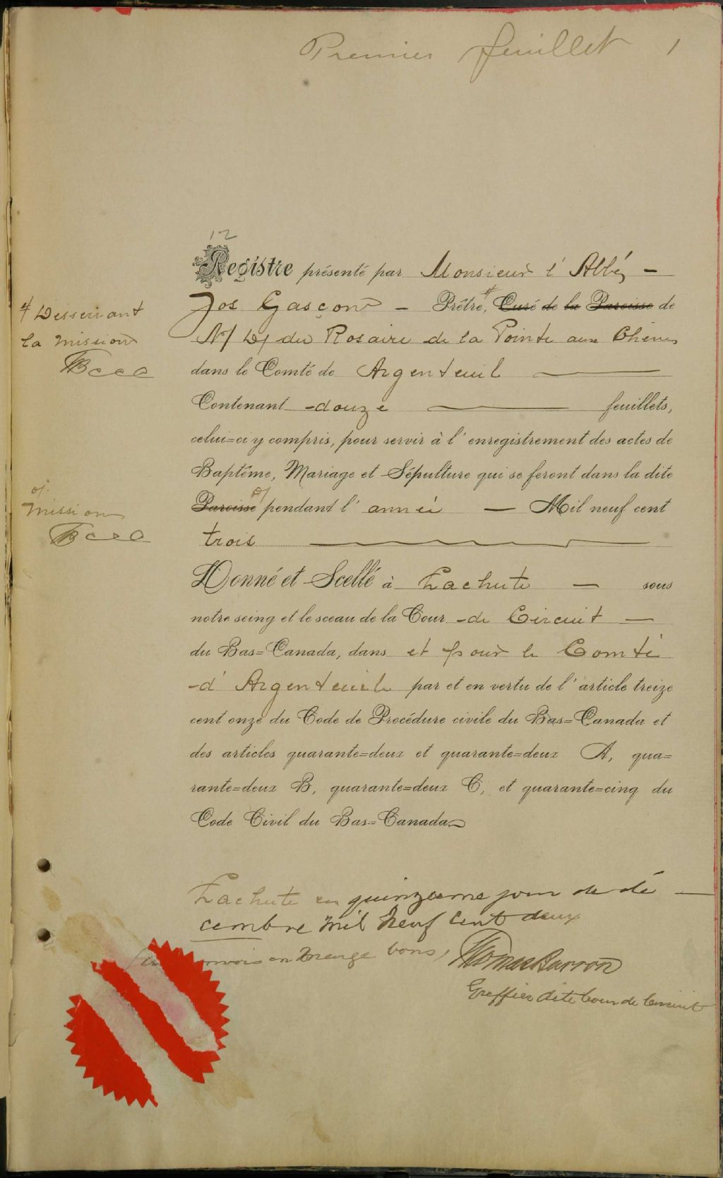 Notre-Dame-du-Saint-Rosaire, 1903-1915, Archives nationales à Montréal, Fonds Cour supérieure. District judiciaire de Terrebonne. État civil, (06M,CE606,S86).