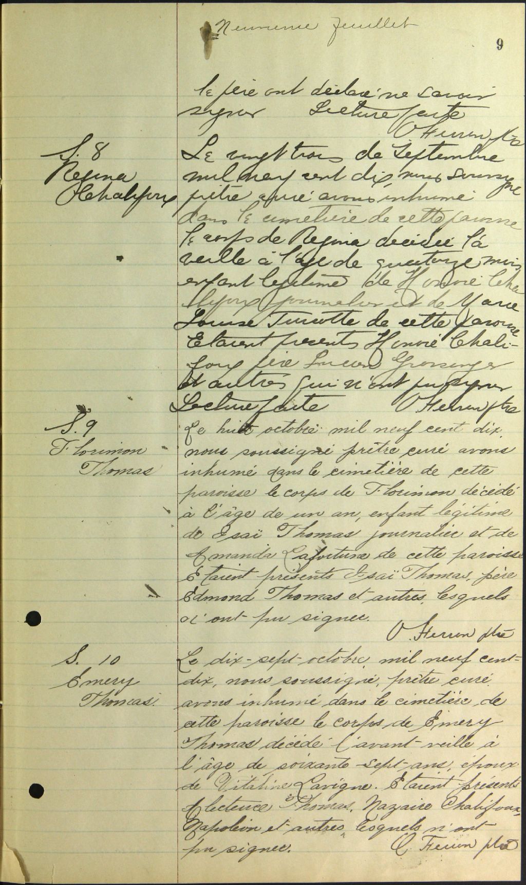 Saint-Rémi d'Amherst, 1900-1921, Archives nationales à Montréal, Fonds Cour supérieure. District judiciaire de Terrebonne. État civil, (06M,CE606,S88).