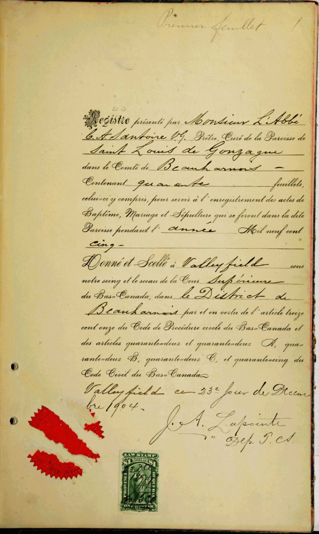 Saint-Louis-de-Gonzague, 1847-1921, Archives nationales à Montréal, Fonds Cour supérieure. District judiciaire de Beauharnois. État civil, (06M,CE607,S10).