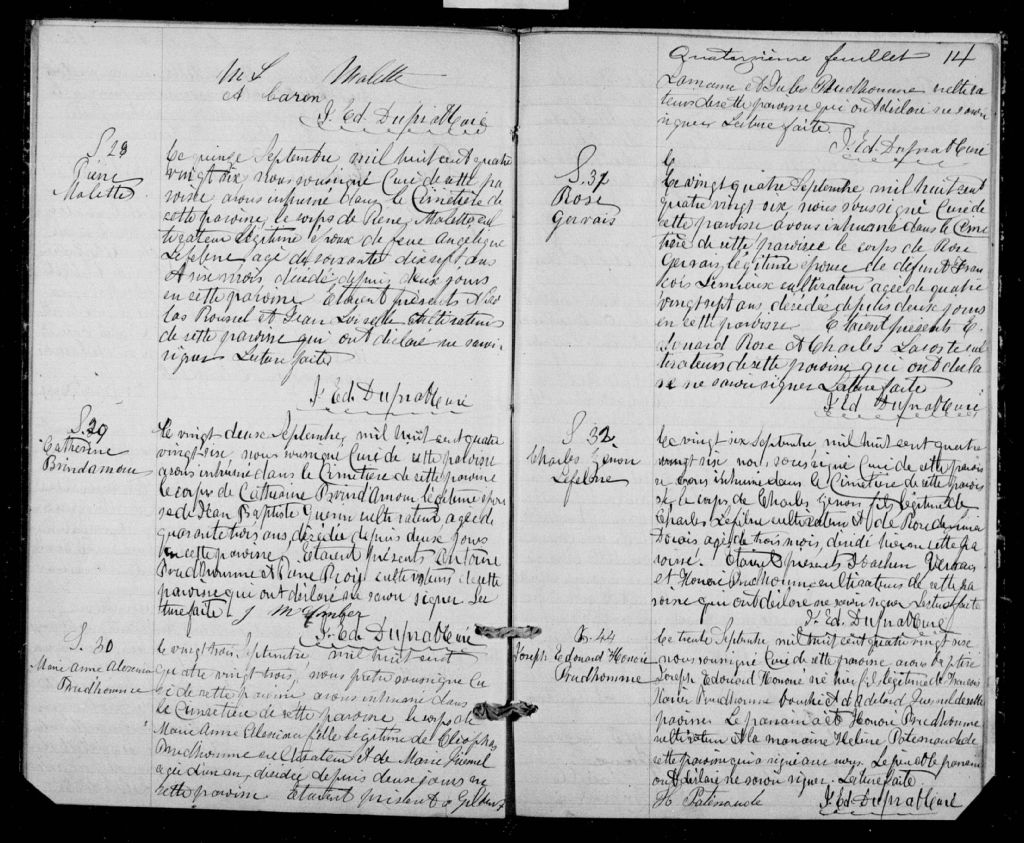 Sainte-Philomène, 1840-1921, Archives nationales à Montréal, Fonds Cour supérieure. District judiciaire de Beauharnois. État civil, (06M,CE607,S14).