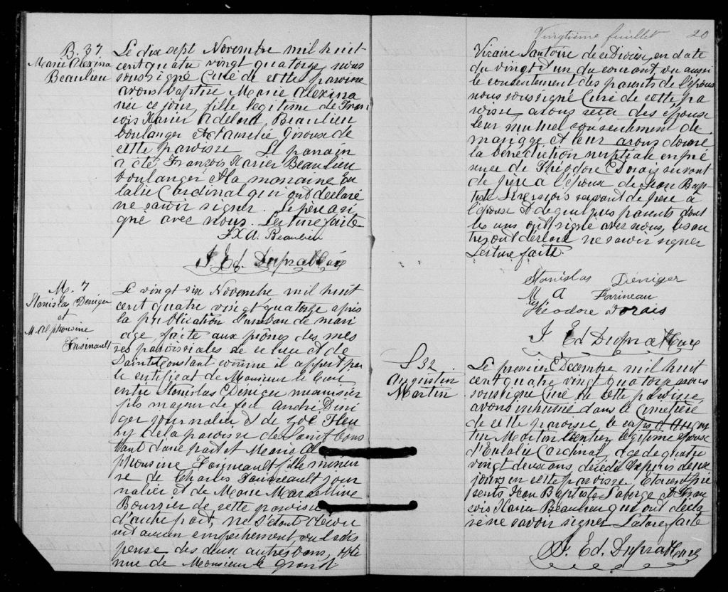 Sainte-Philomène, 1840-1921, Archives nationales à Montréal, Fonds Cour supérieure. District judiciaire de Beauharnois. État civil, (06M,CE607,S14).