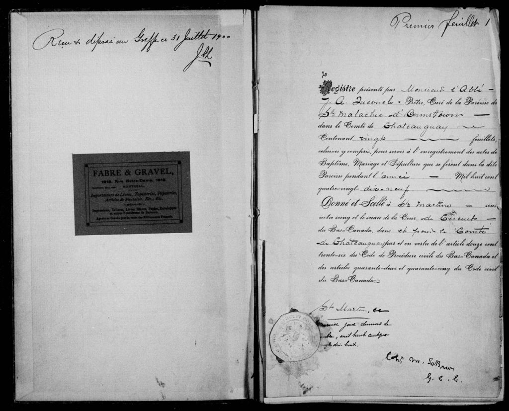 Saint-Malachie-d'Ormstown, 1847-1921, Archives nationales à Montréal, Fonds Cour supérieure. District judiciaire de Beauharnois. État civil, (06M,CE607,S11).