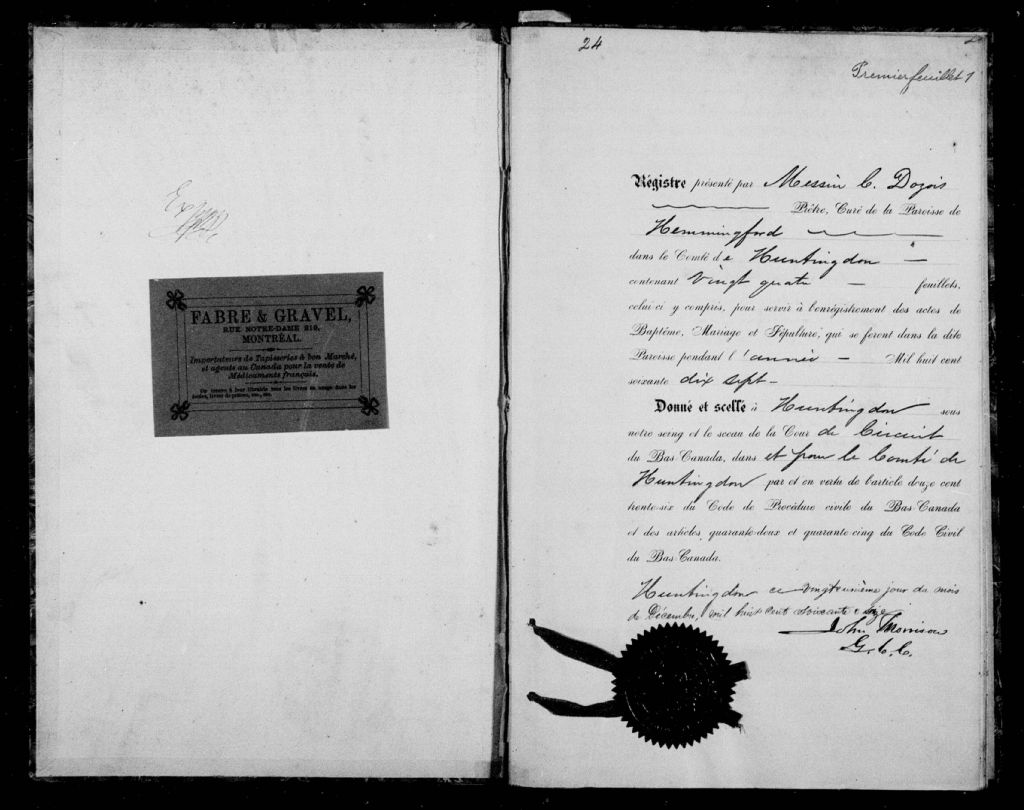 Saint-Romain-de-Hemmingford, 1854-1921, Archives nationales à Montréal, Fonds Cour supérieure. District judiciaire de Beauharnois. État civil, (06M,CE607,S16).
