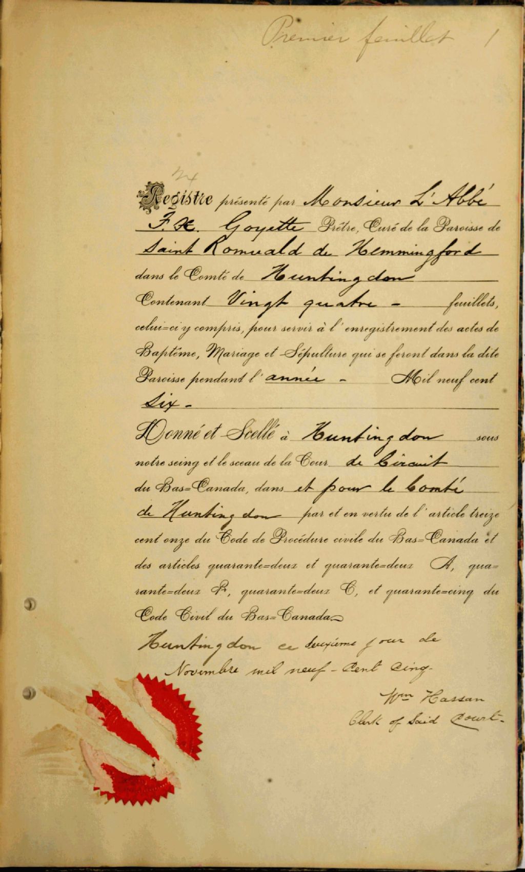 Saint-Romain-de-Hemmingford, 1854-1921, Archives nationales à Montréal, Fonds Cour supérieure. District judiciaire de Beauharnois. État civil, (06M,CE607,S16).
