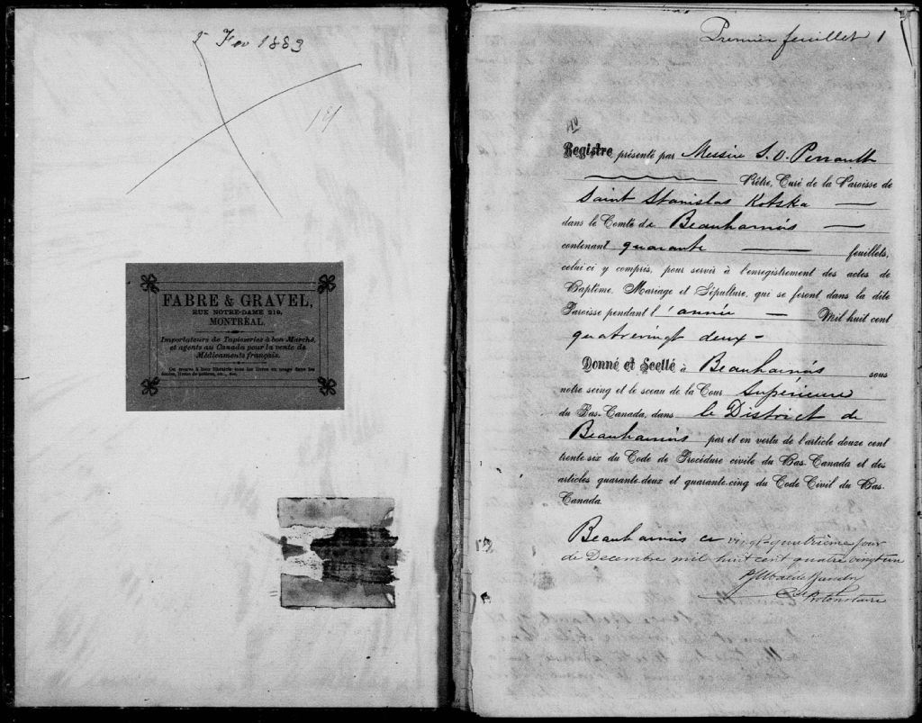 Saint-Stanislas-de-Kostka, 1860-1921, Archives nationales à Montréal, Fonds Cour supérieure. District judiciaire de Beauharnois. État civil, (06M,CE607,S17).