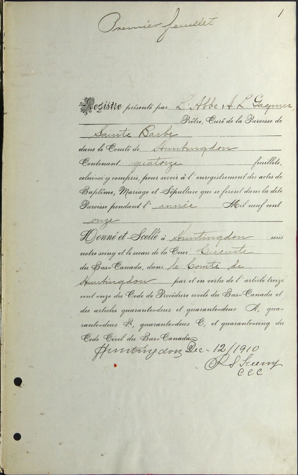 Sainte-Barbe, 1884-1921, Archives nationales à Montréal, Fonds Cour supérieure. District judiciaire de Beauharnois. État civil, (06M,CE607,S22).