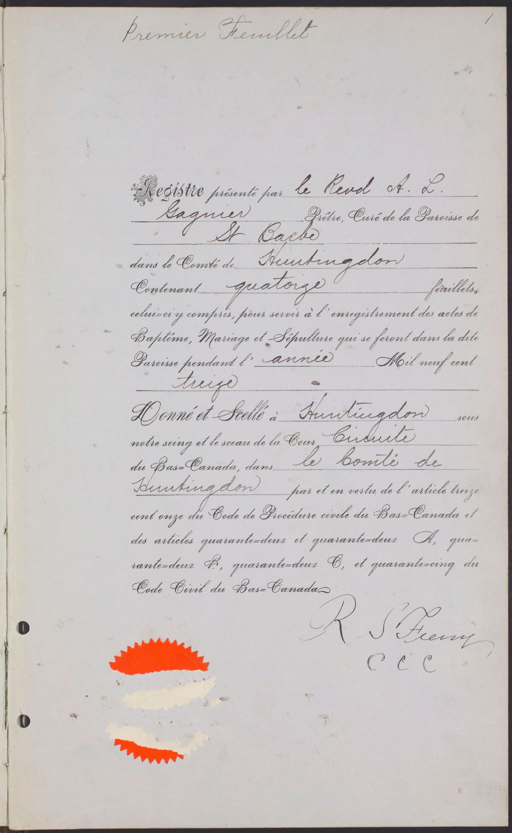 Sainte-Barbe, 1884-1921, Archives nationales à Montréal, Fonds Cour supérieure. District judiciaire de Beauharnois. État civil, (06M,CE607,S22).