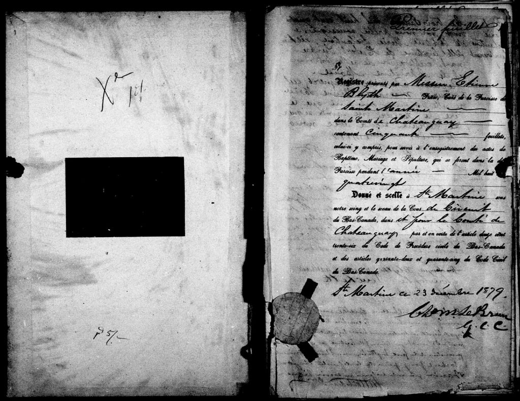 Sainte-Martine, 1823-1921, Archives nationales à Montréal, Fonds Cour supérieure. District judiciaire de Beauharnois. État civil, (06M,CE607,S25).