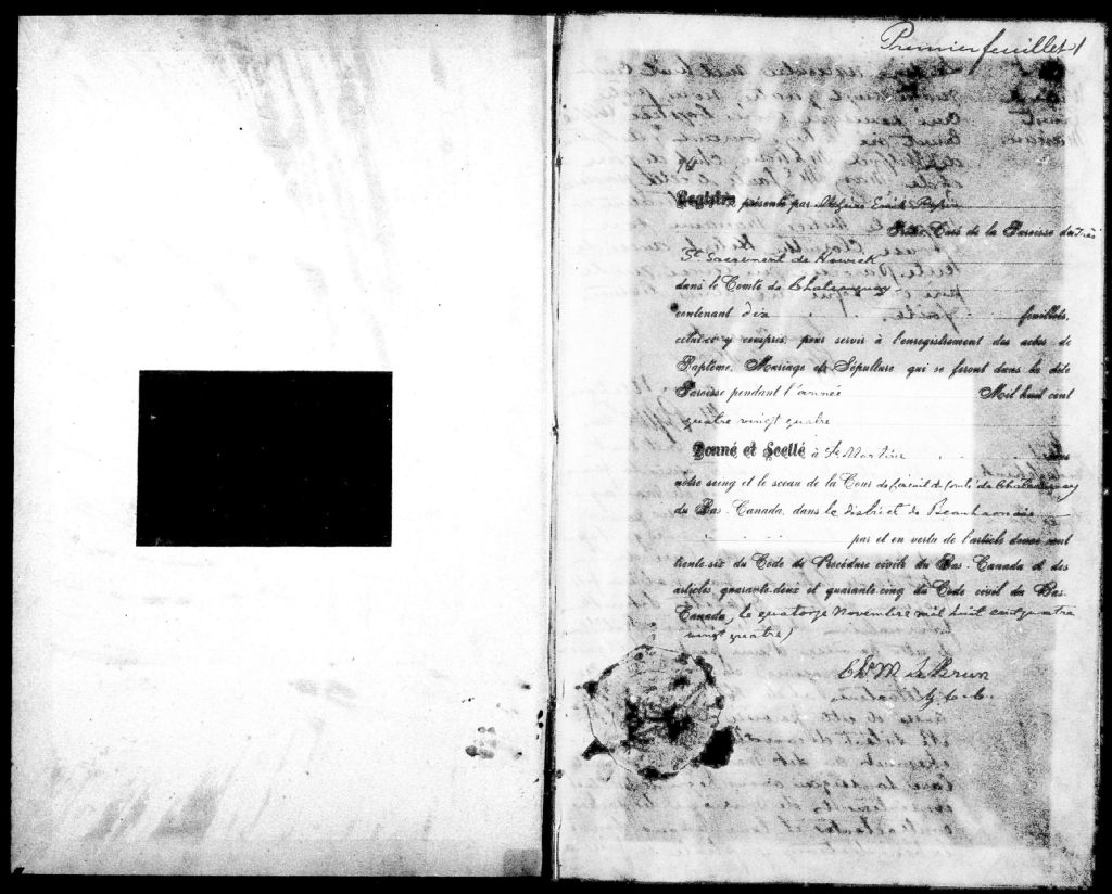 Très-Saint-Sacrement, 1884-1921, Archives nationales à Montréal, Fonds Cour supérieure. District judiciaire de Beauharnois. État civil, (06M,CE607,S26).