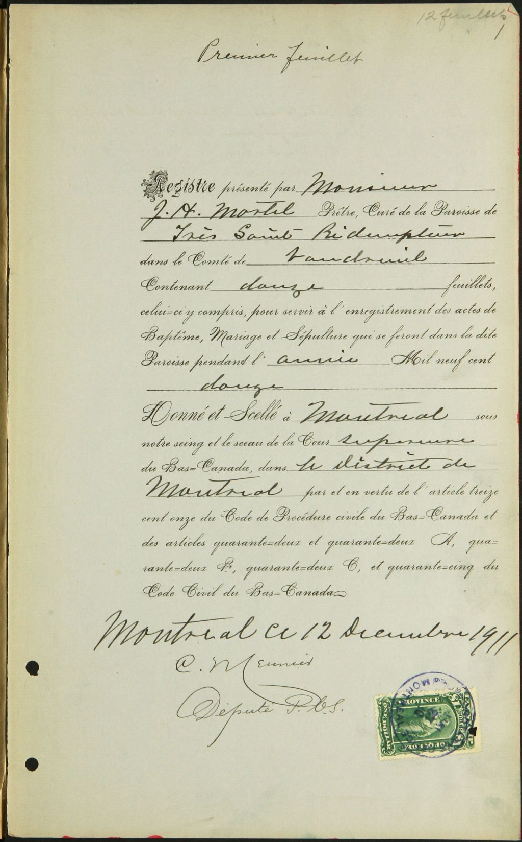 Très-Saint-Rédempteur, 1881-1921, Archives nationales à Montréal, Fonds Cour supérieure. District judiciaire de Beauharnois. État civil, (06M,CE607,S27).