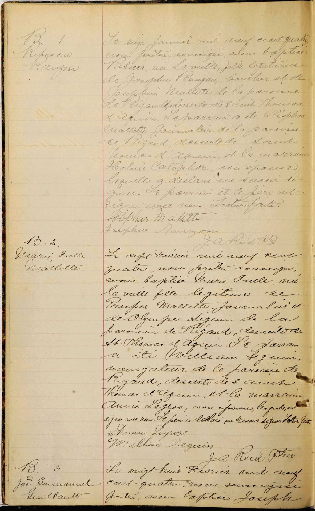 Saint-Thomas-d'Aquin, 1899-1921, Archives nationales à Montréal, Fonds Cour supérieure. District judiciaire de Beauharnois. État civil, (06M,CE607,S43).