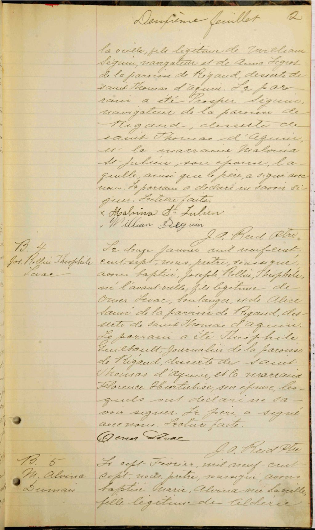 Saint-Thomas-d'Aquin, 1899-1921, Archives nationales à Montréal, Fonds Cour supérieure. District judiciaire de Beauharnois. État civil, (06M,CE607,S43).