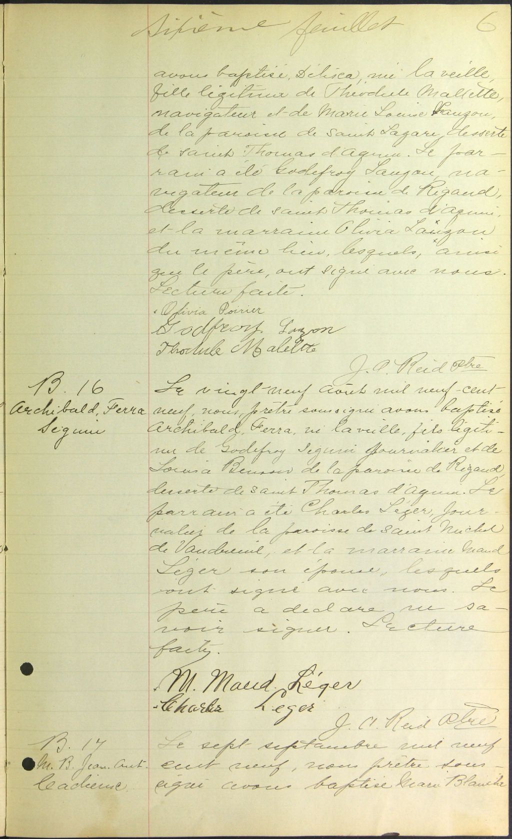 Saint-Thomas-d'Aquin, 1899-1921, Archives nationales à Montréal, Fonds Cour supérieure. District judiciaire de Beauharnois. État civil, (06M,CE607,S43).
