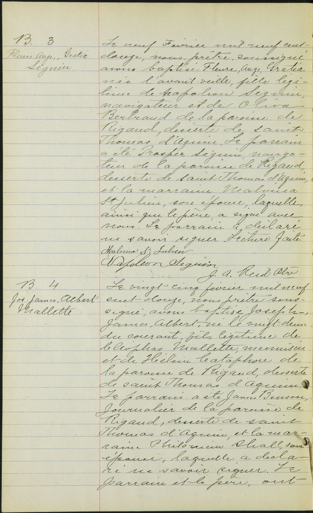 Saint-Thomas-d'Aquin, 1899-1921, Archives nationales à Montréal, Fonds Cour supérieure. District judiciaire de Beauharnois. État civil, (06M,CE607,S43).
