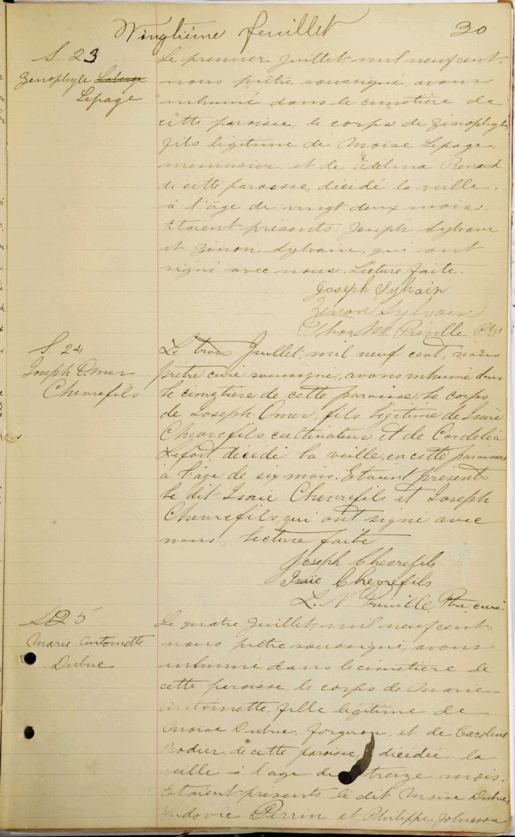 Saint-Jean-Chrysostôme, 1840-1921, Archives nationales à Montréal, Fonds Cour supérieure. District judiciaire de Beauharnois. État civil, (06M,CE607,S6).