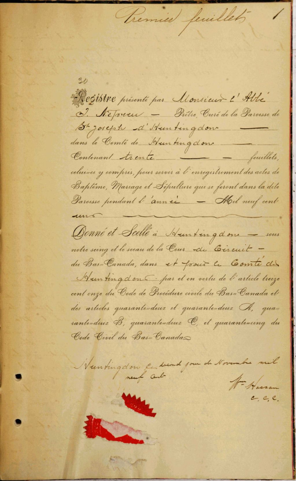 Saint-Joseph d'Huntingdon, 1862-1921, Archives nationales à Montréal, Fonds Cour supérieure. District judiciaire de Beauharnois. État civil, (06M,CE607,S8).