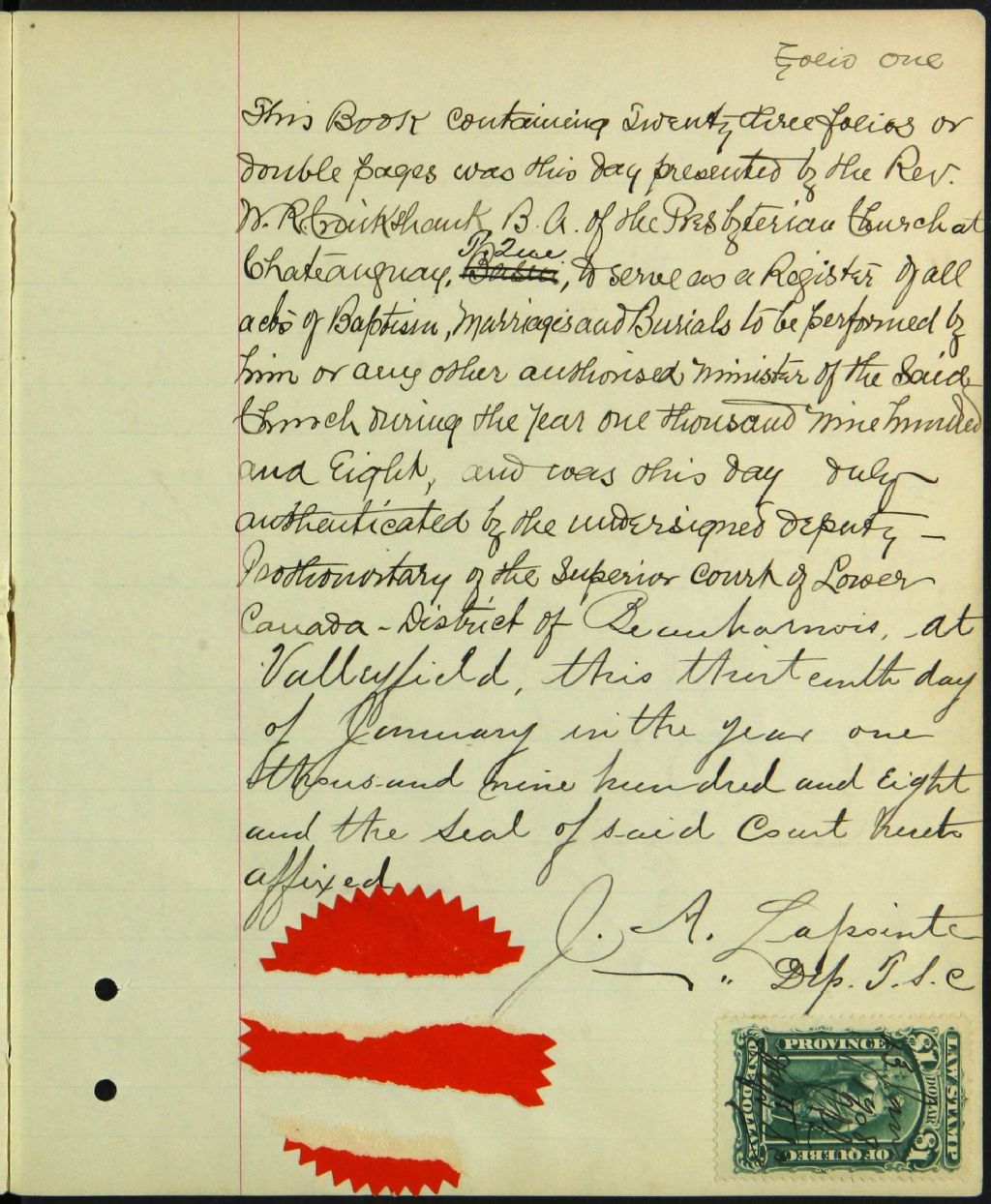St. Andrew's Presbyterian Church, 1908-1921, Archives nationales à Montréal, Fonds Cour supérieure. District judiciaire de Beauharnois. État civil, (06M,CE607,S85).